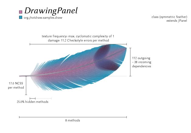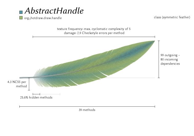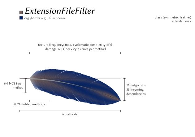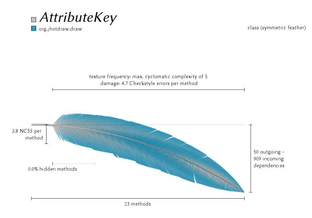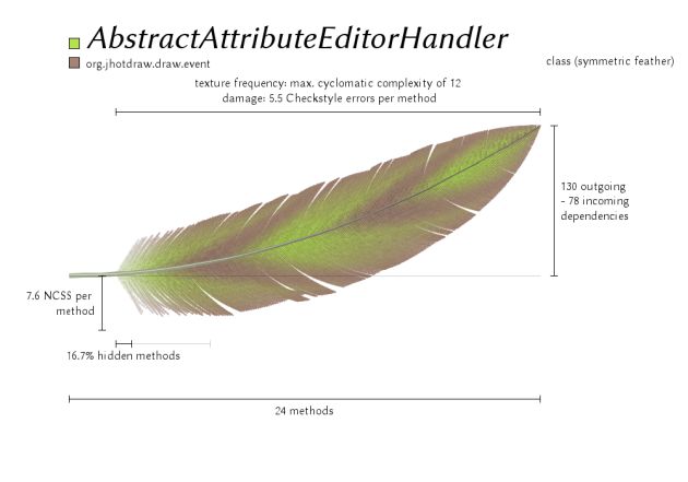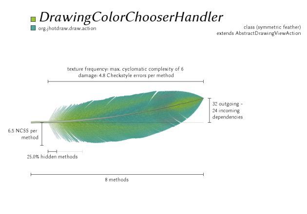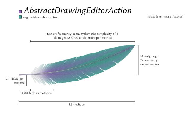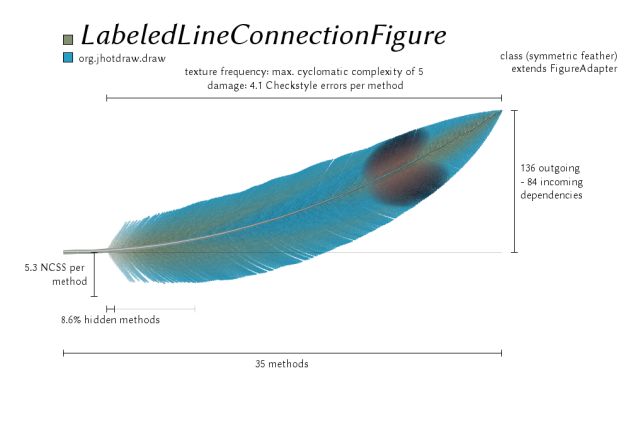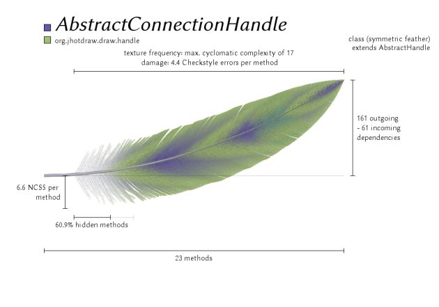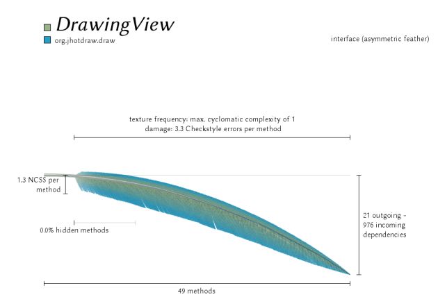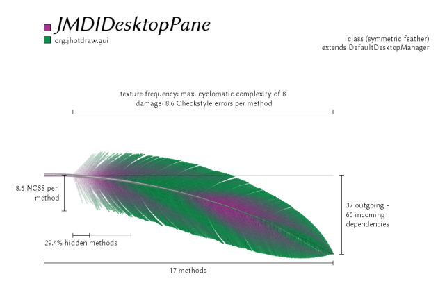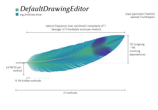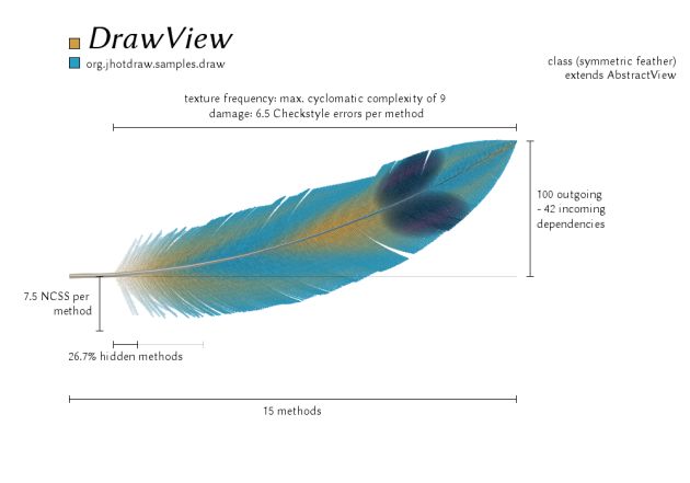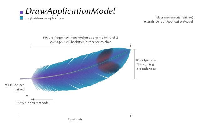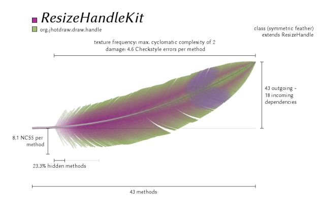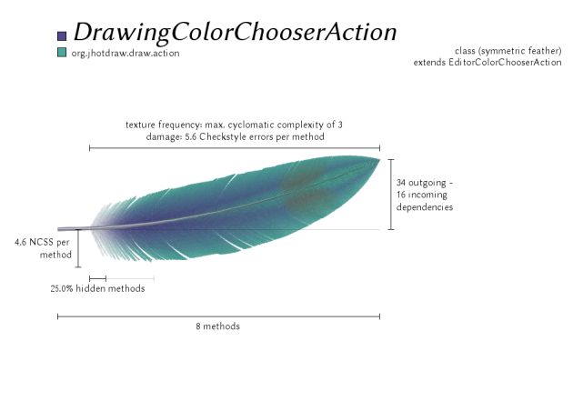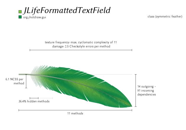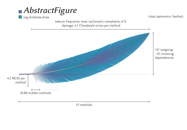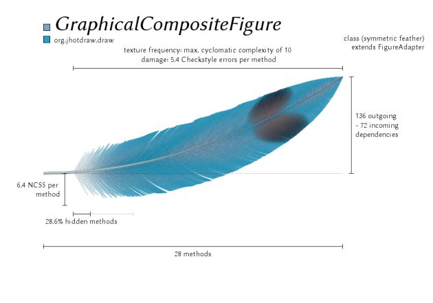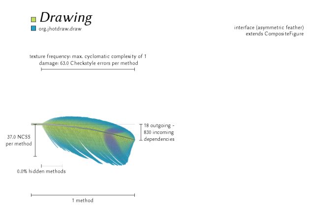 578 classes and interfaces of JHotDraw 7.6 visualized as Software Feathers.