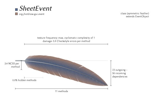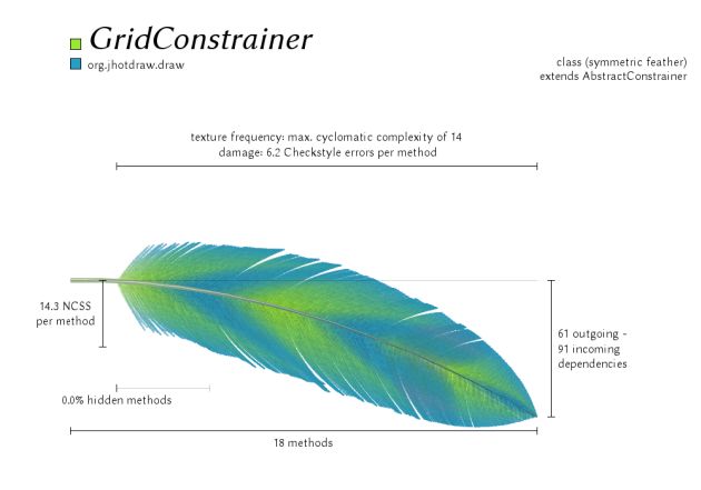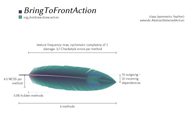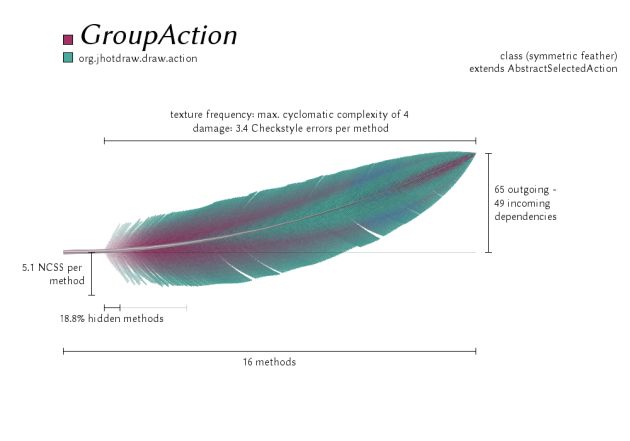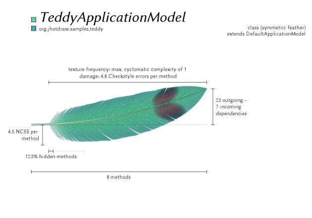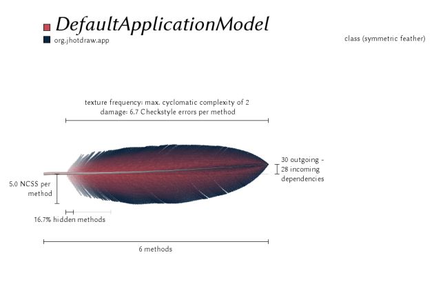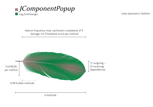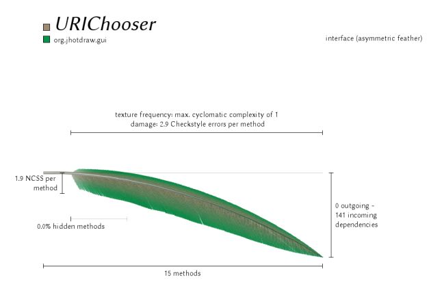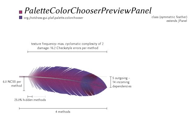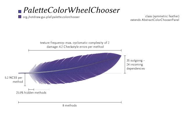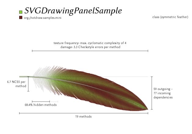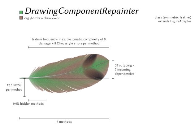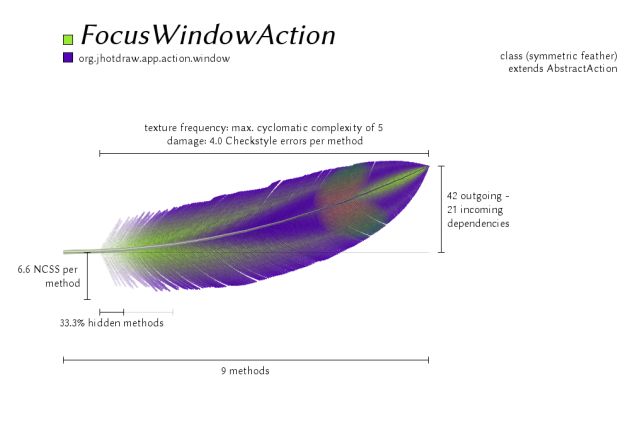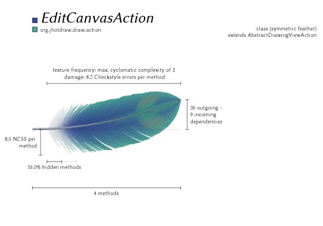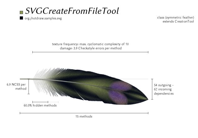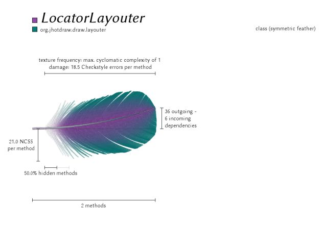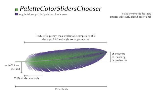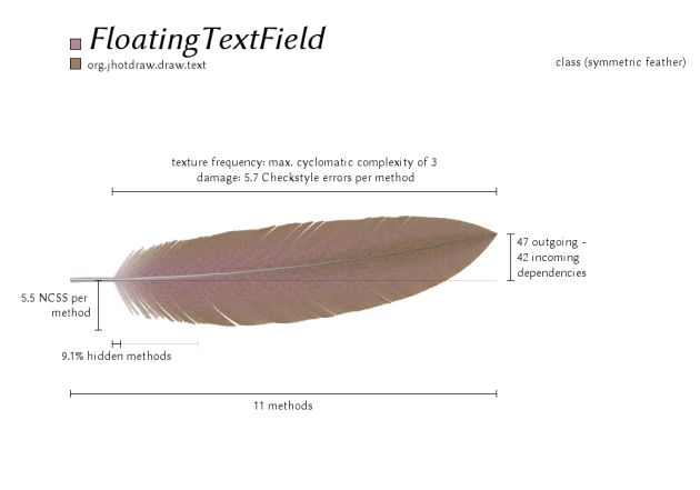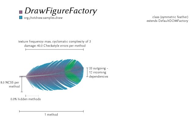 578 classes and interfaces of JHotDraw 7.6 visualized as Software Feathers.