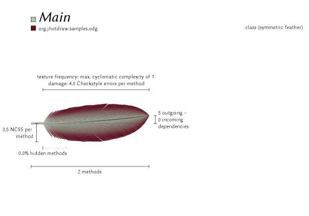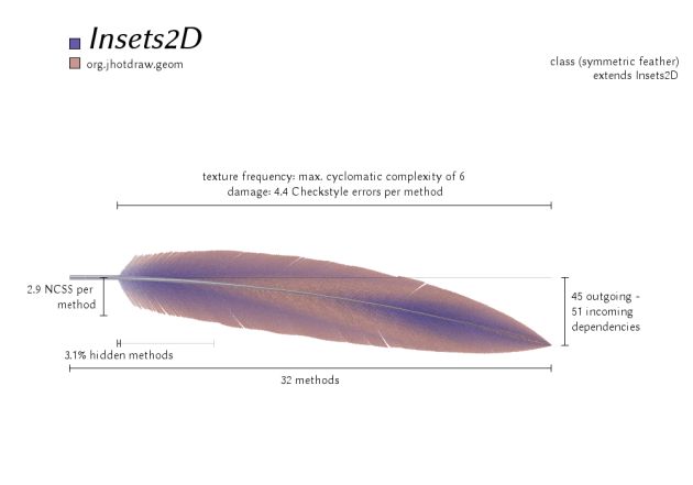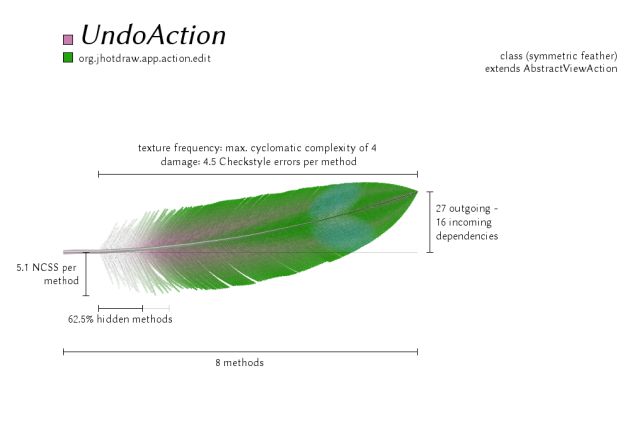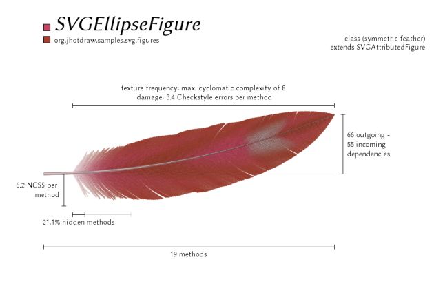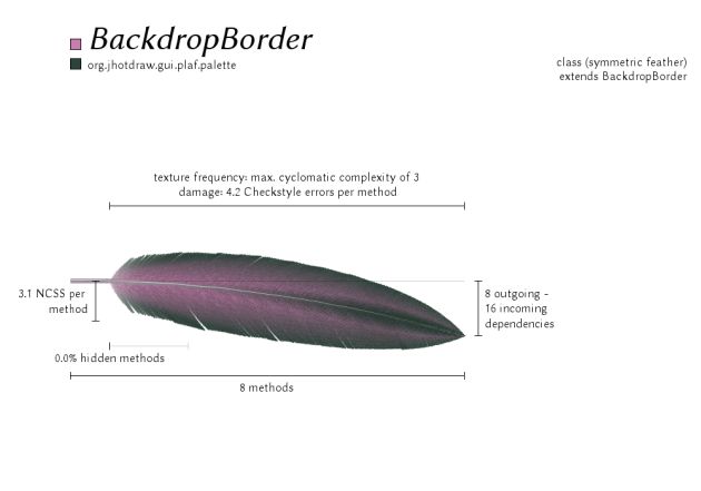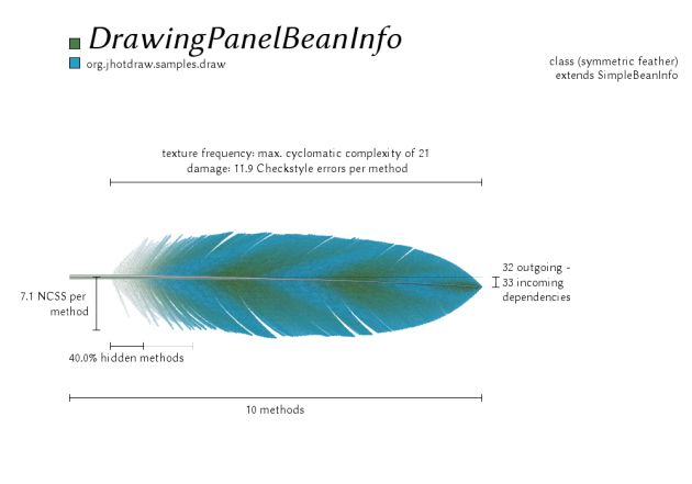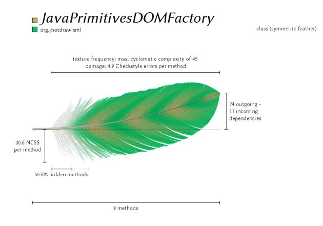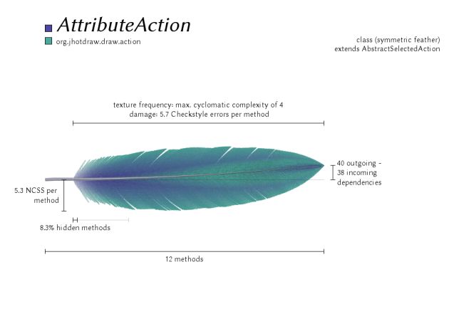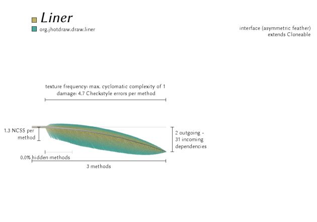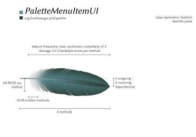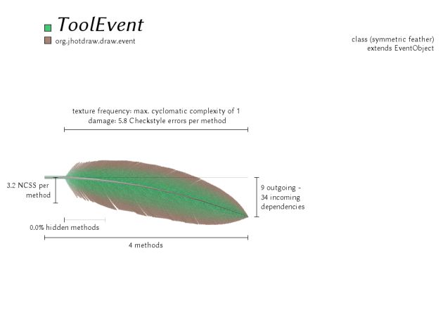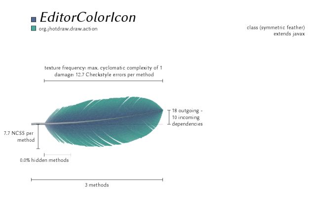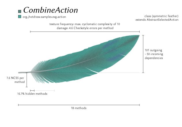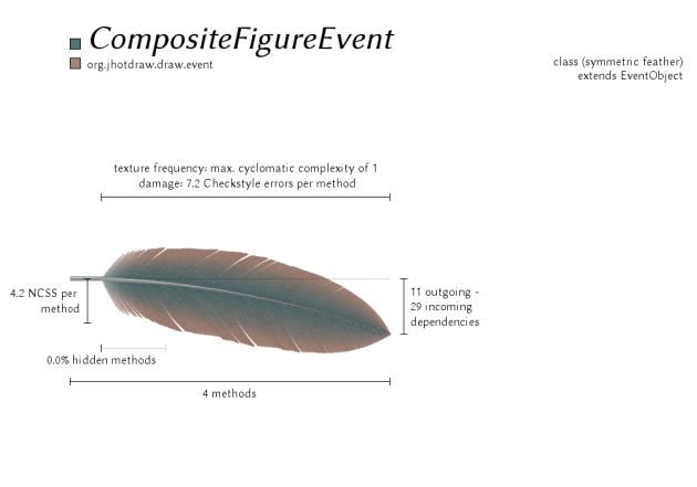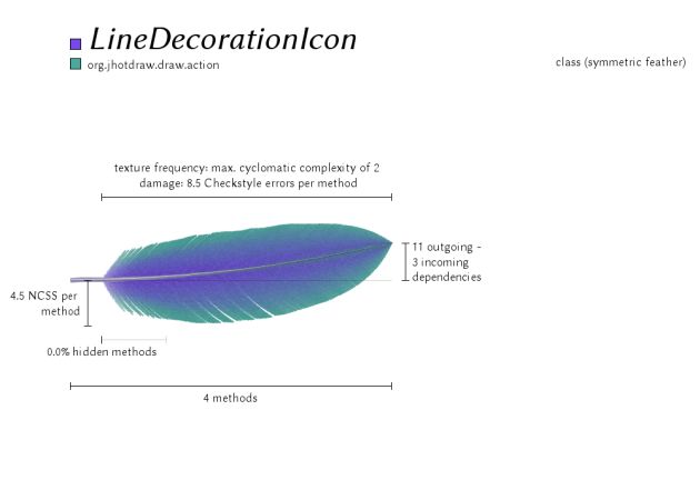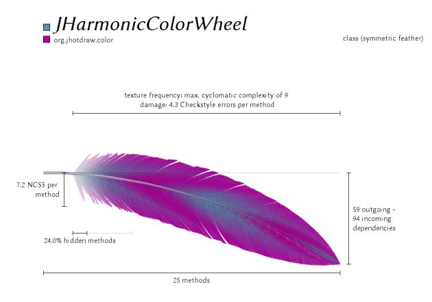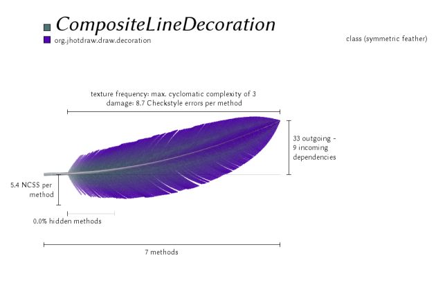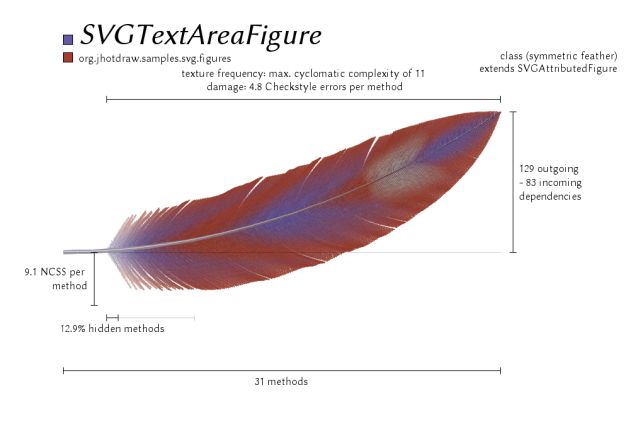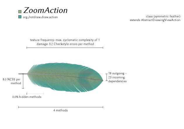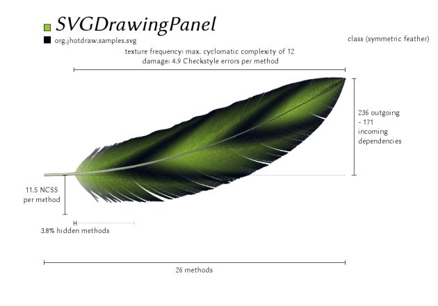 578 classes and interfaces of JHotDraw 7.6 visualized as Software Feathers.