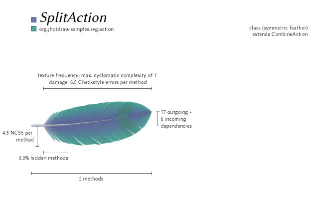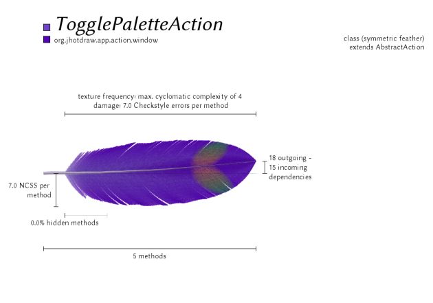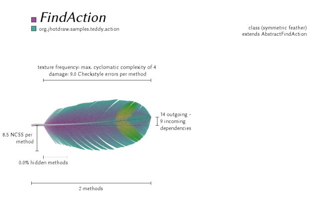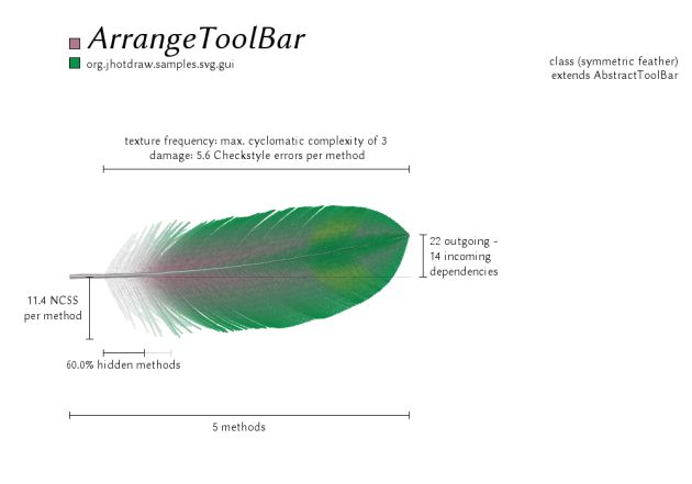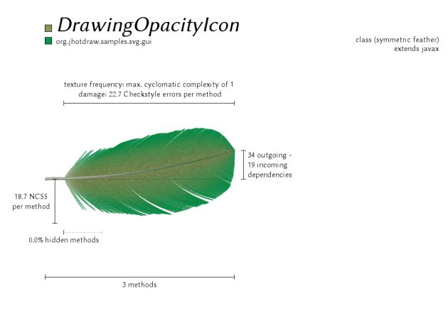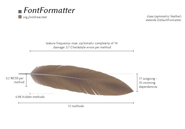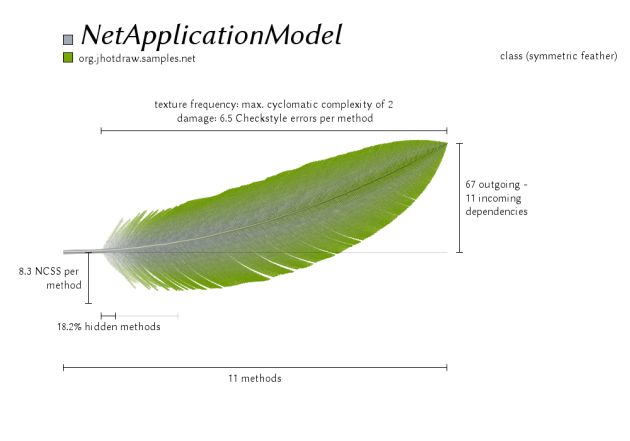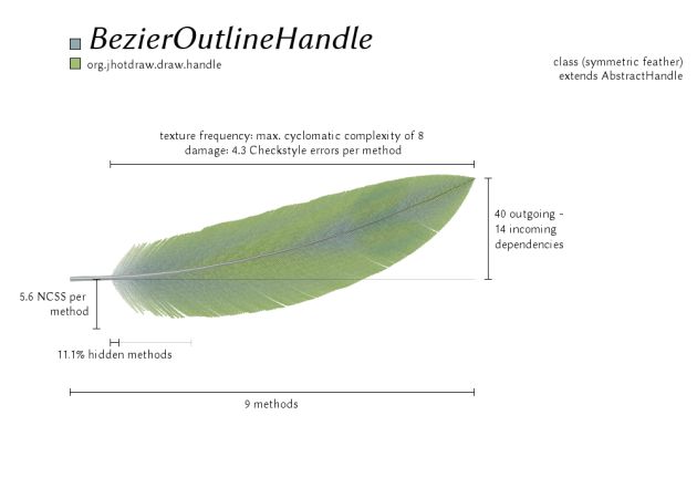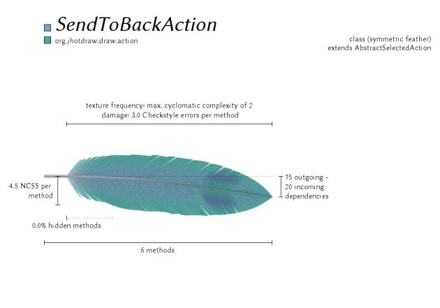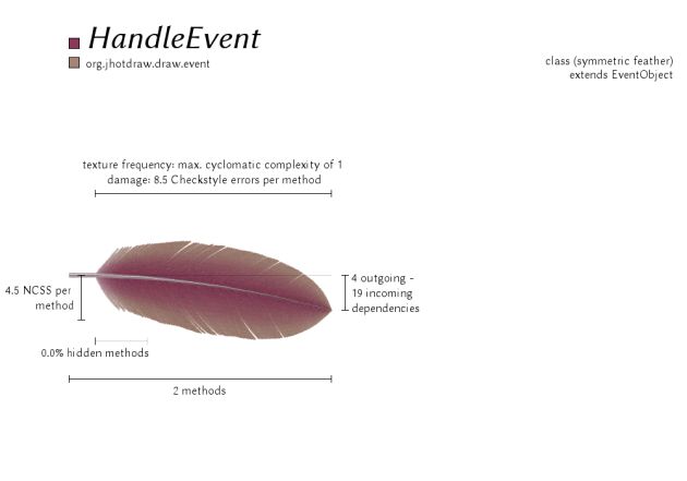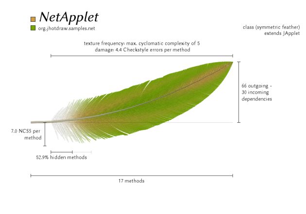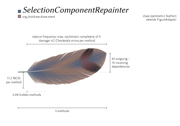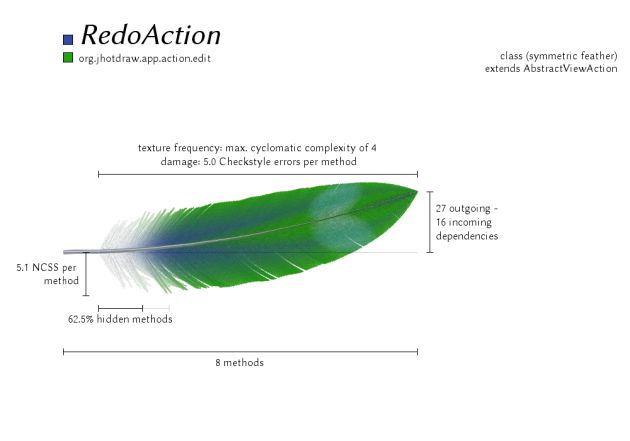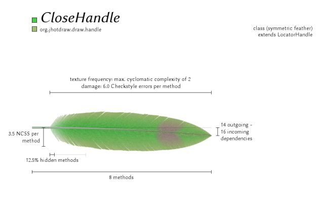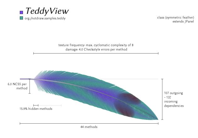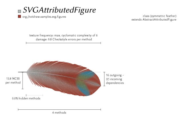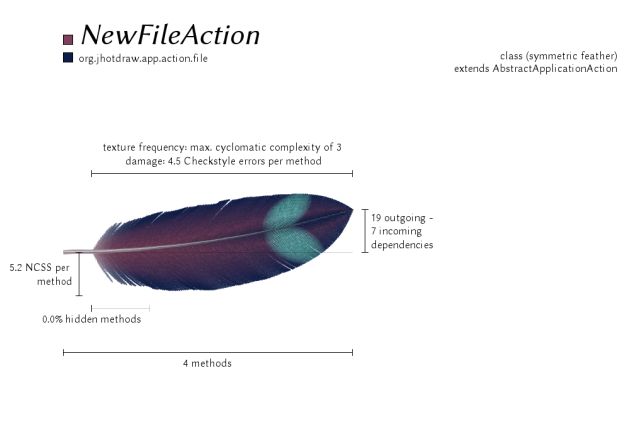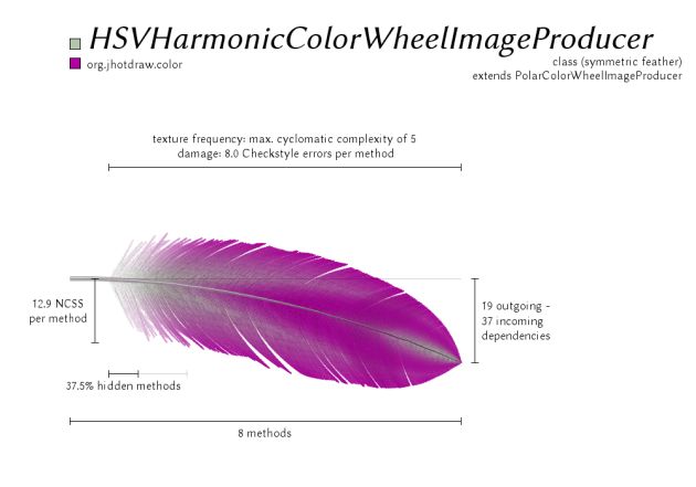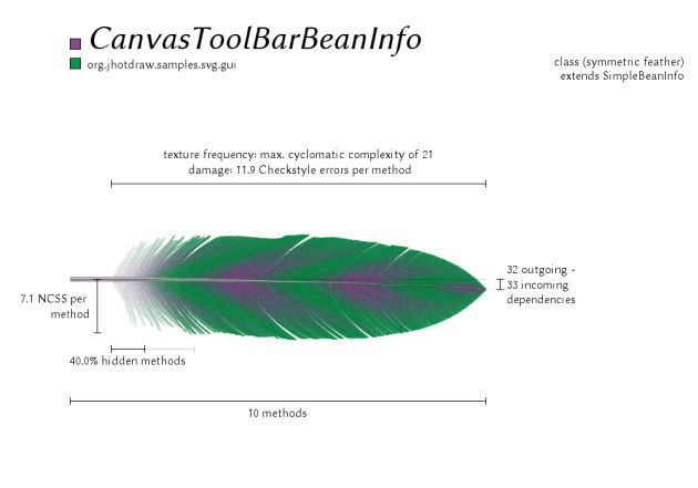 578 classes and interfaces of JHotDraw 7.6 visualized as Software Feathers.