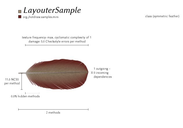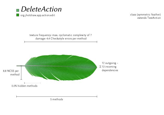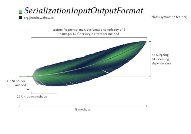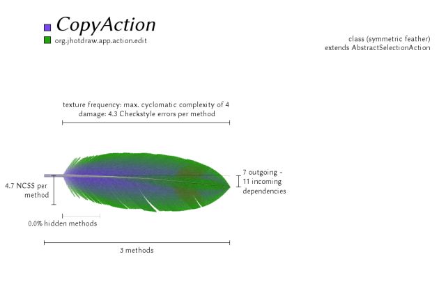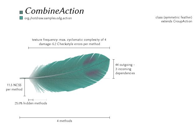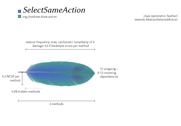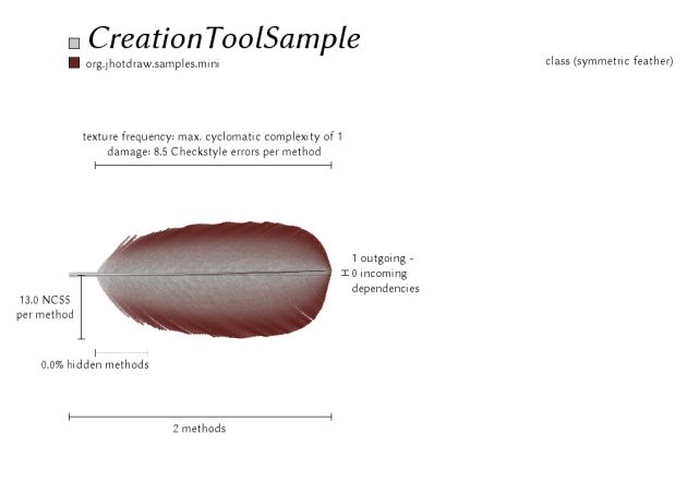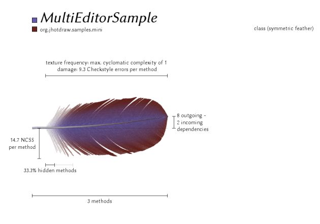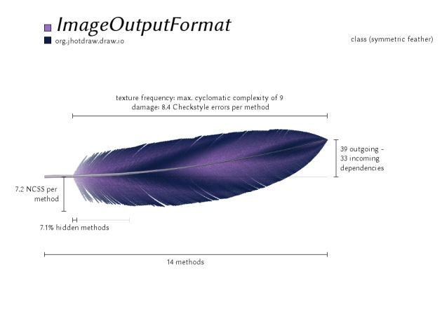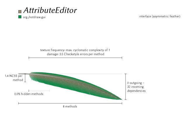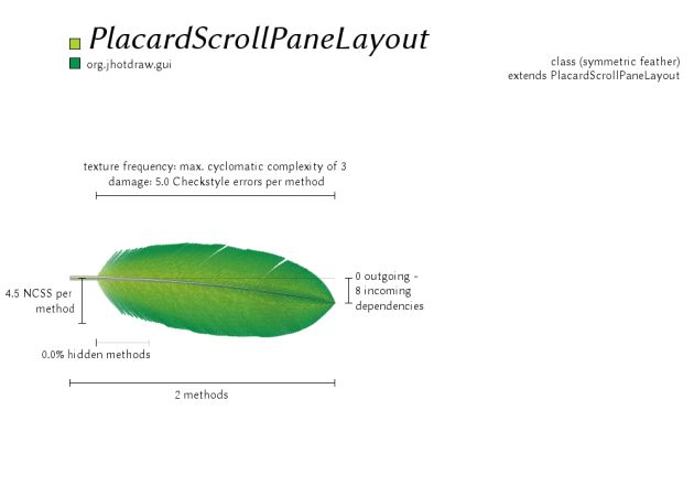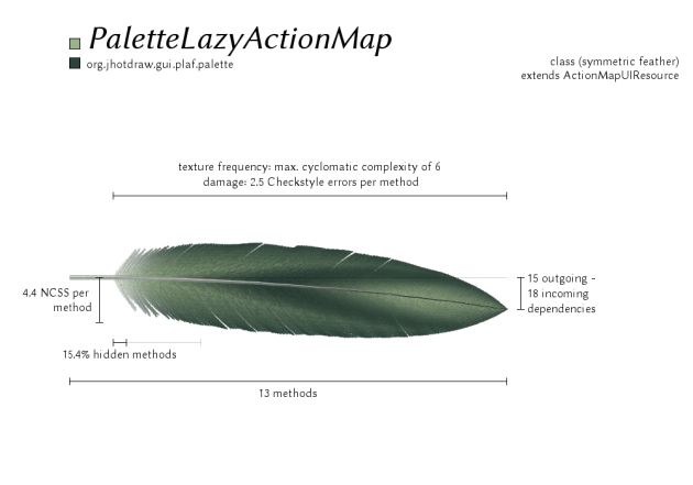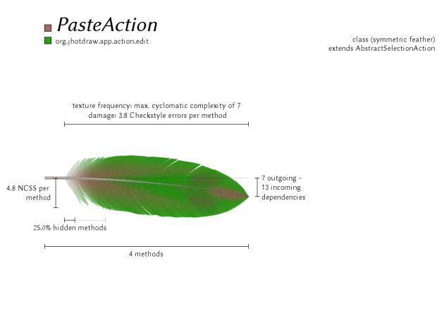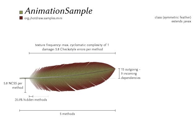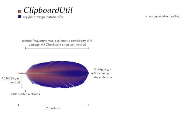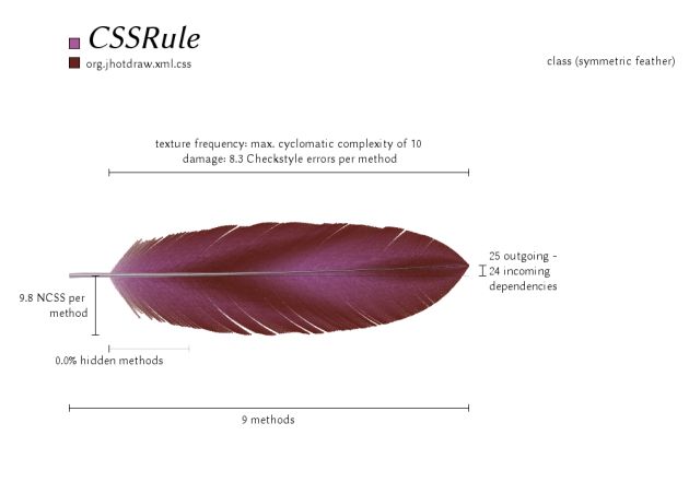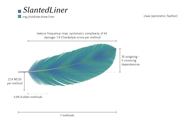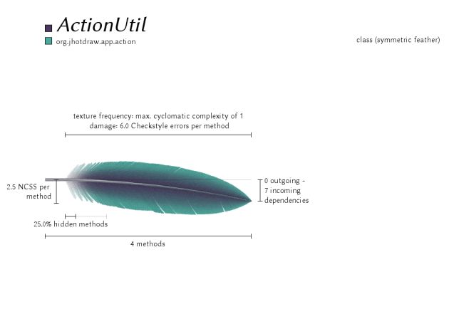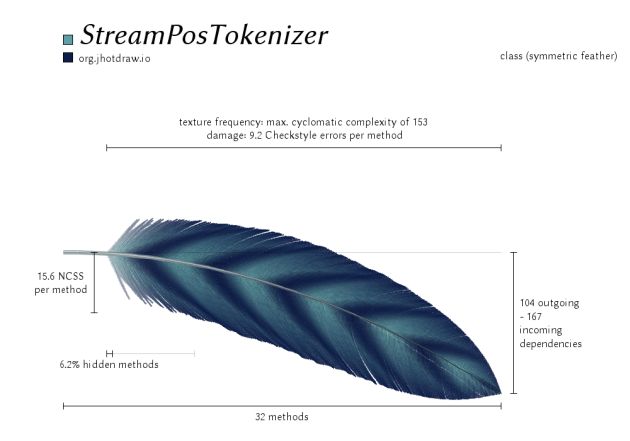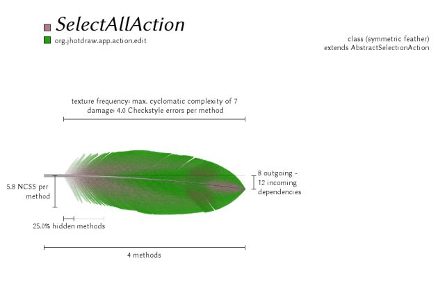 578 classes and interfaces of JHotDraw 7.6 visualized as Software Feathers.
