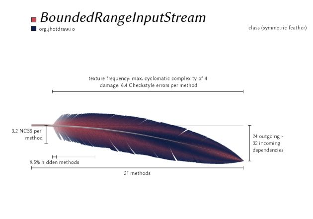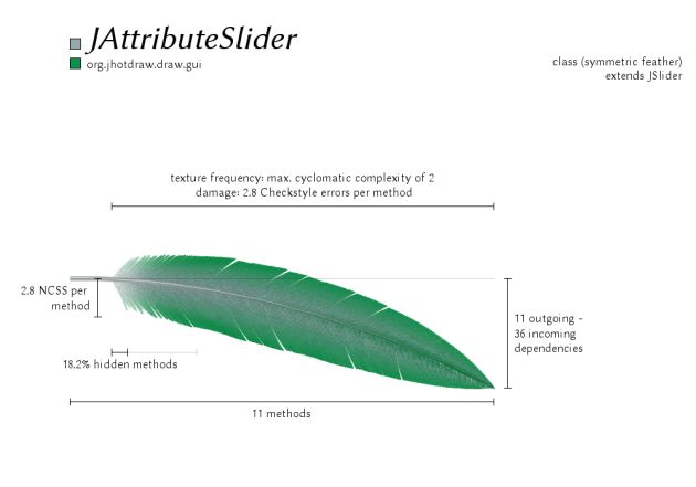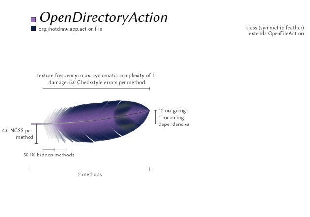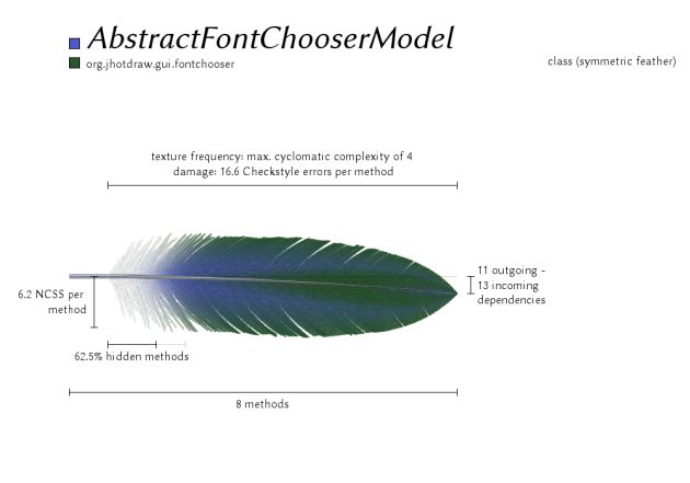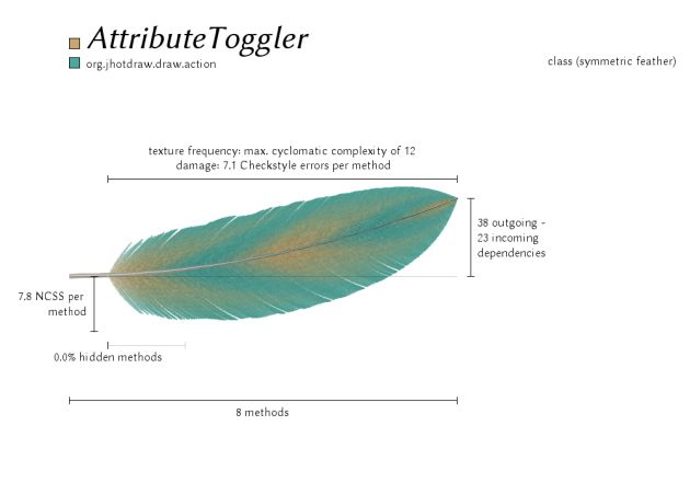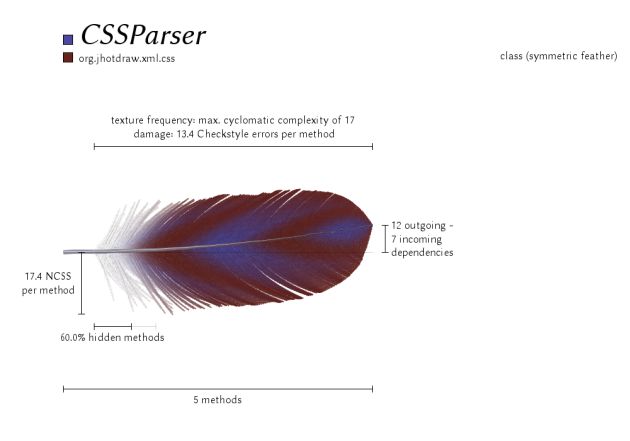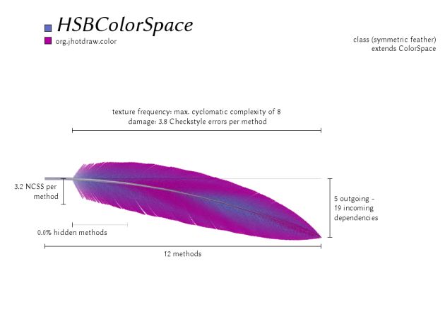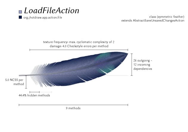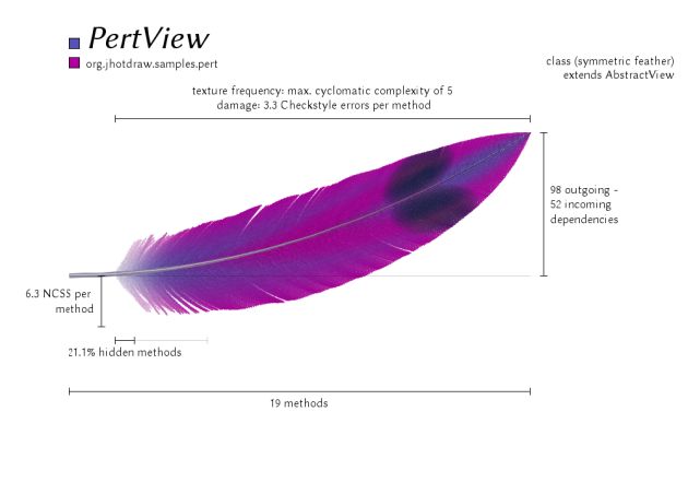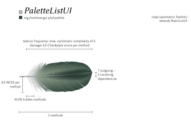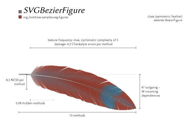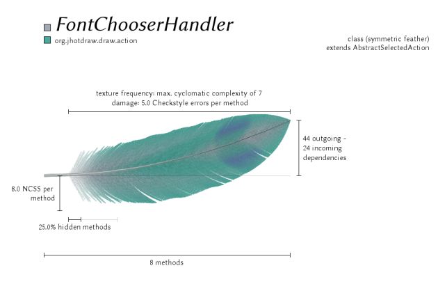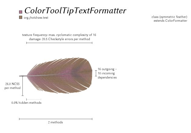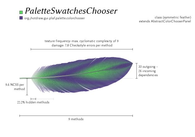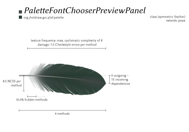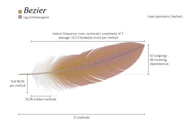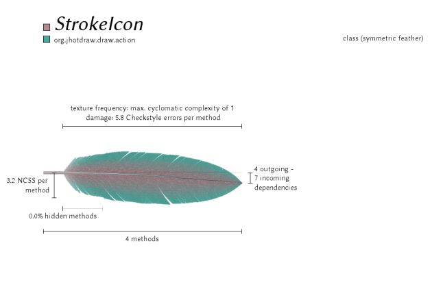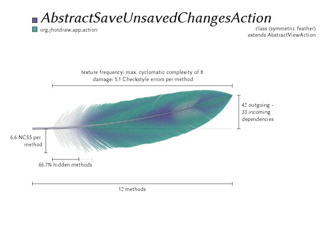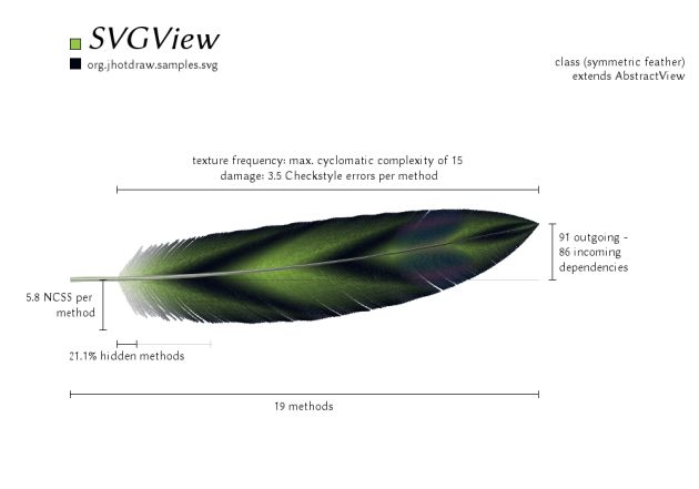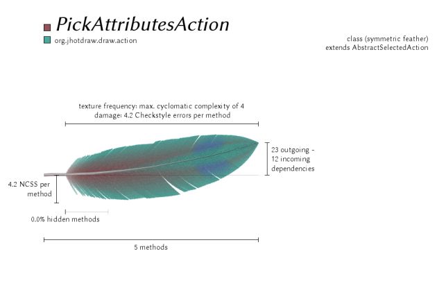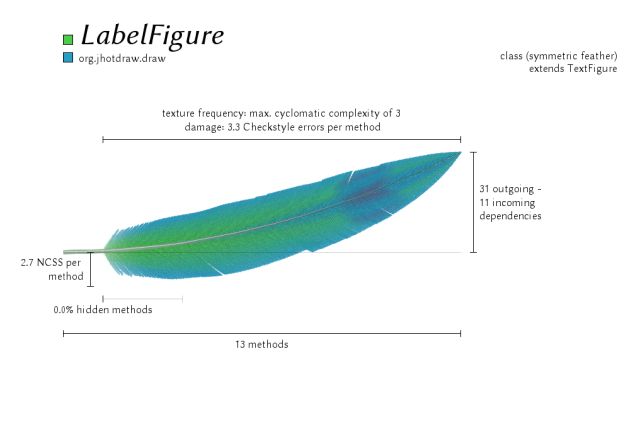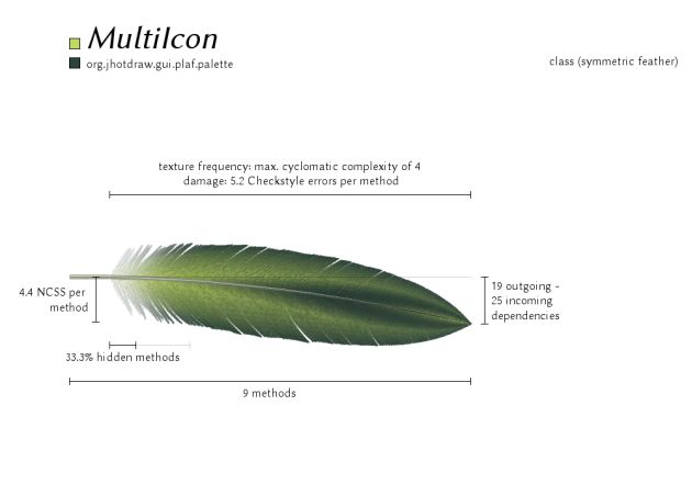 Beck, Fabian. Software Feathers: Figurative Visualization of Software Metrics. In IVAPP '14 Proceedings of the 5th International Conference on Information Visualization Theory and Applications. 2014 (to appear).